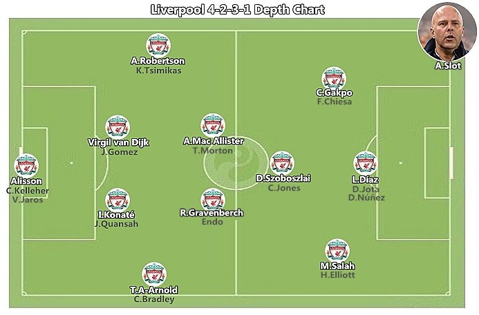四天内两战强敌,利物浦的首发阵容只有1处变化,斯洛特使用了两种截然不同的阵型和打法。